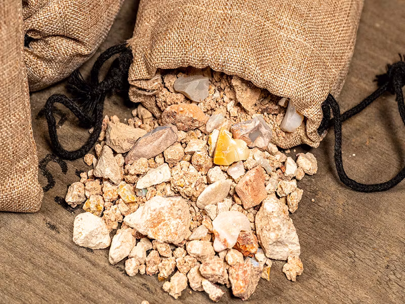 Varje påse innehåller spårmängder av opal från området White Cliffs, NSW .