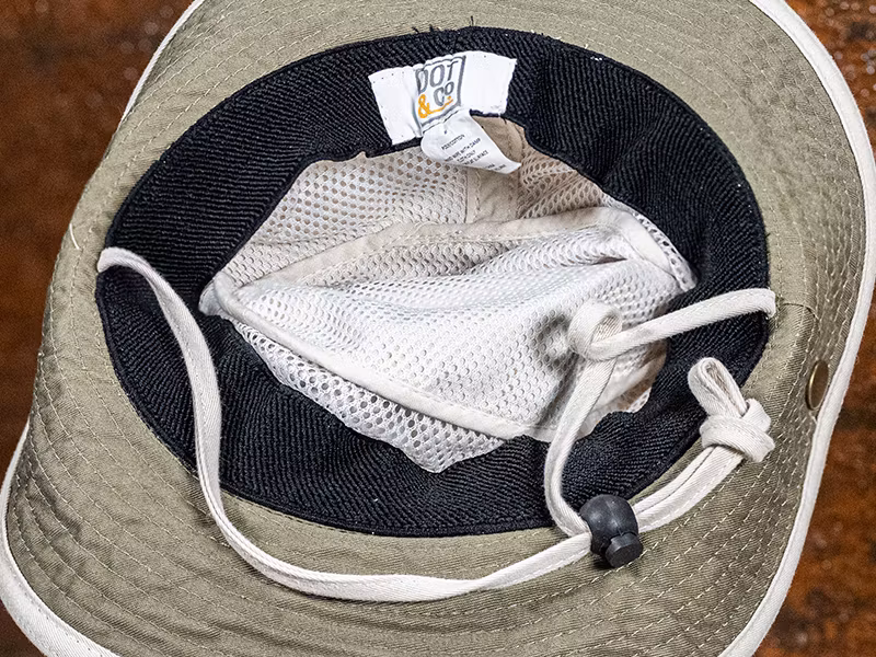 Den har även en inner lining av bomullsmersh för att sprida svett för avdunstnig och hålla dig svalare.