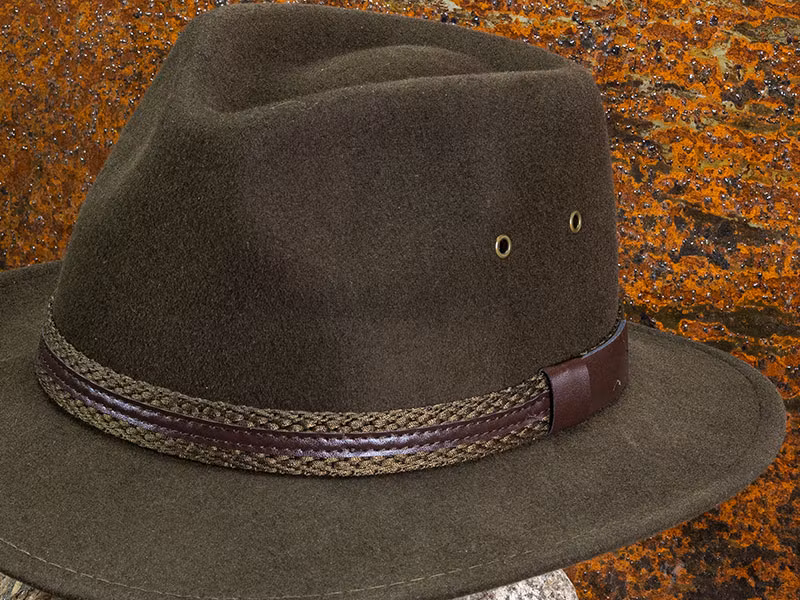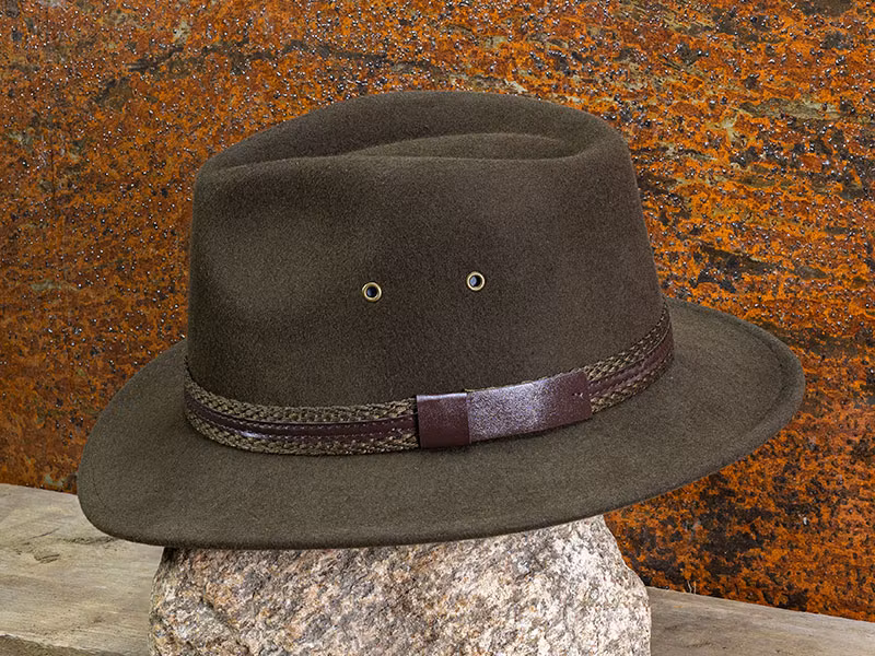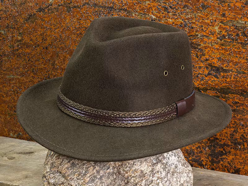 En tidslös klassisk modell i ullfilt med ett smalt brette i en ljus choklad nyans.