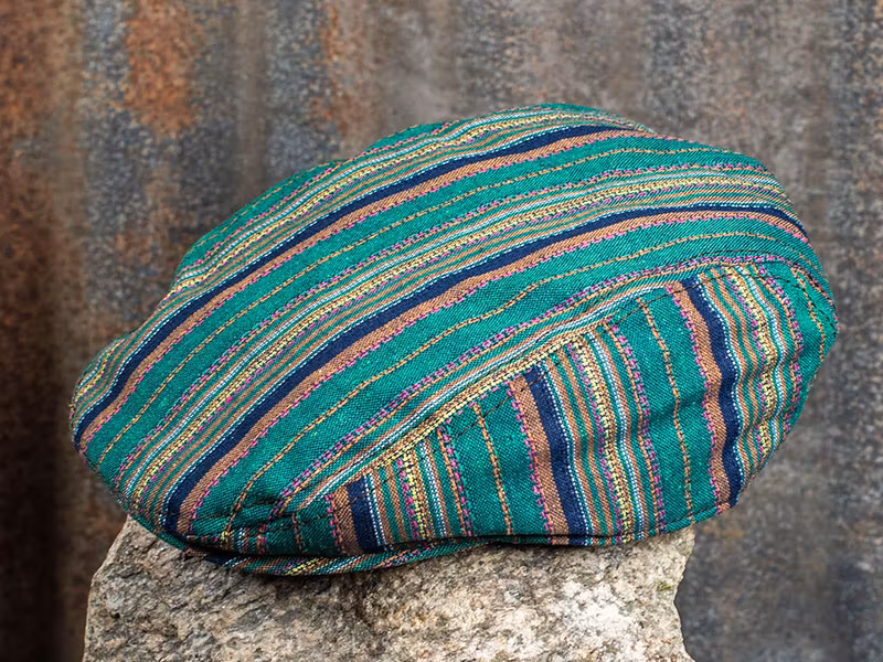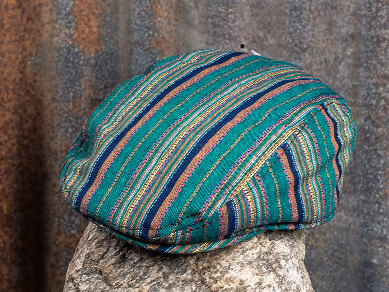 En super cool keps i "Duckbill ivy cap stil" som Carlos Santana har designat, har ett mönster har inspererats från sydamerika.