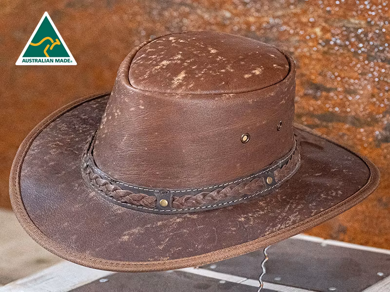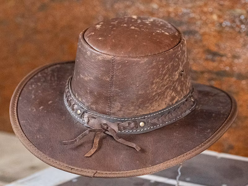 Roo Hickory är en hatt som har en sliten outback look, tillverkad i känguruskinn.