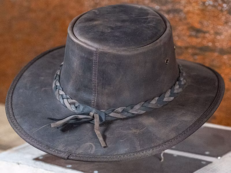 Bronco Brown är en robust hatt av slitstarkt buffelskinn från Barmah Hats. En hatt som tål det mest hårdhänta behandlingar.