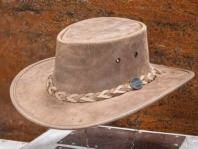 Bronco Hickory är en robust hatt av slitstarkt buffelskinn från Barmah Hats. En hatt som tål det mest hårdhänta behandlingar.