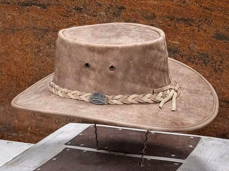 Alla hattarna är impregnerade mot regn från tillverkaren. Alla Bronco och Mocka hattar är gjorda i skinn från Brahman buffeln därav namnet ”Barmah Hats”.