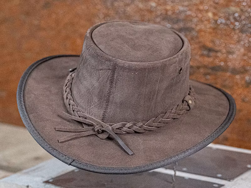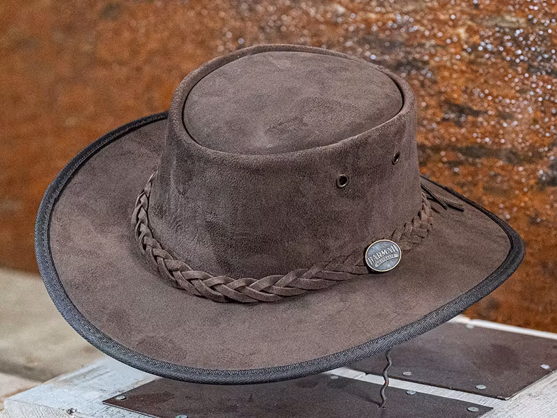 Bronco Suede Choc är en mocka hatt av slitstarkt buffelskinn från Barmah Hats. En hatt som tål det mest hårdhänta behandlingar.
